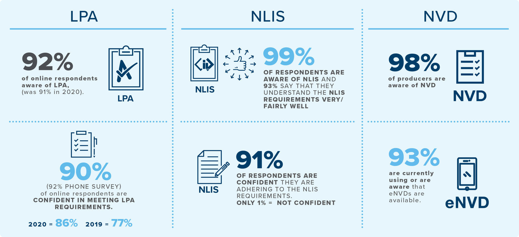 - The survey found that the number of producers who are aware of ISC has increased by 43% since 2018, with 90% or more of all respondents indicating they feel capable of meeting their requirements under the LPA and NLIS programs.