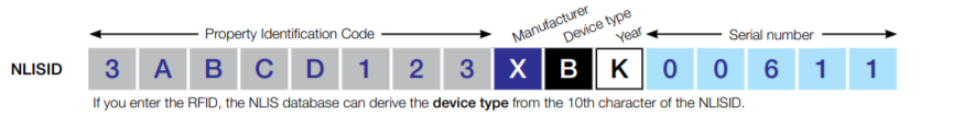 Every year when NLIS tags are ordered, the 11th character denotes the year of manufacture. This means that each year, you can order the same series of numbers, because they will be differentiated by the changing year character. So if you brand 300 calves a year, you can order 300 new tags numbered 00001 to 00300 each year.