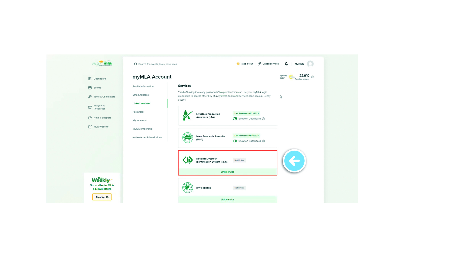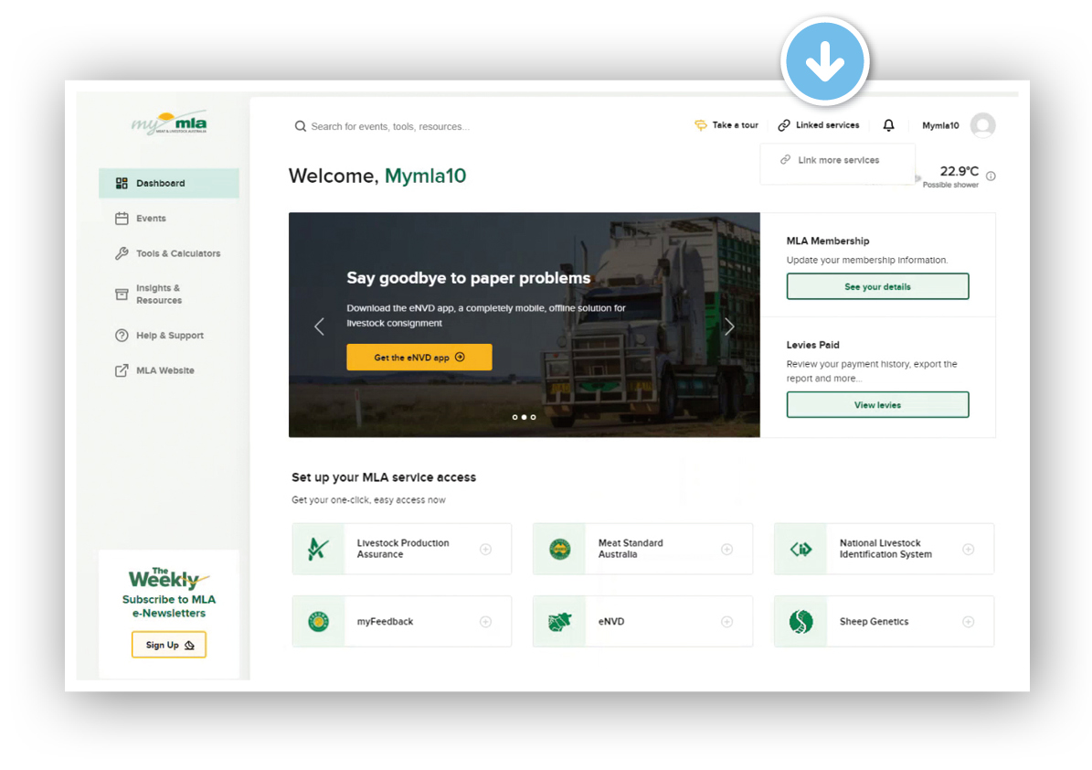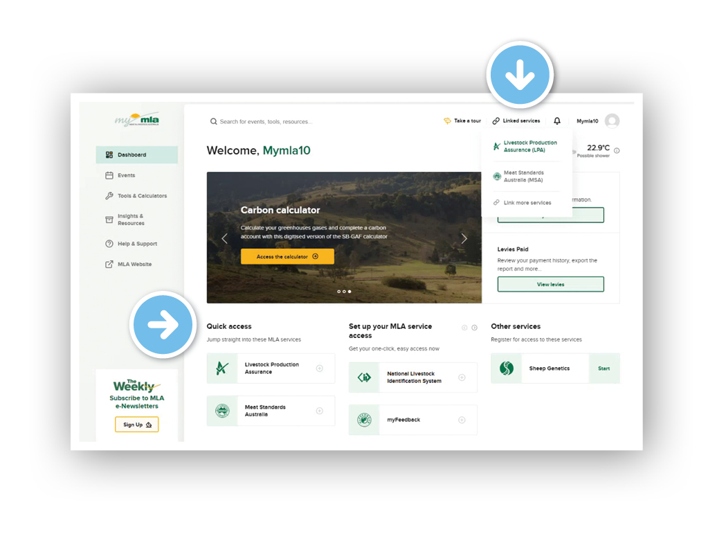myMLA is the gateway to access a range of MLA products and services and provides a single sign on facility to your NLIS, LPA, NVDs, myFeedback and MSA accounts. The myMLA dashboard delivers personalised, relevant content that’s unique to each user, based on their pre-determined preferences.