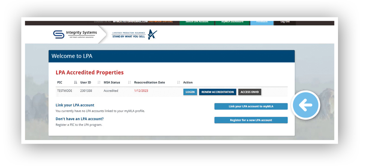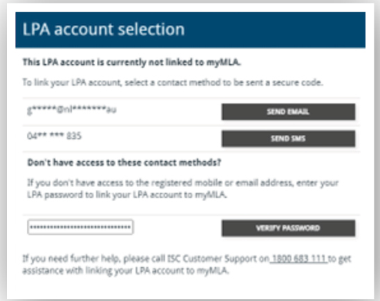 Click the ‘Link your LPA account to myMLA’ button on the Welcome to LPA screen.