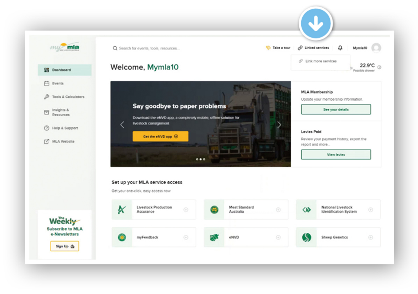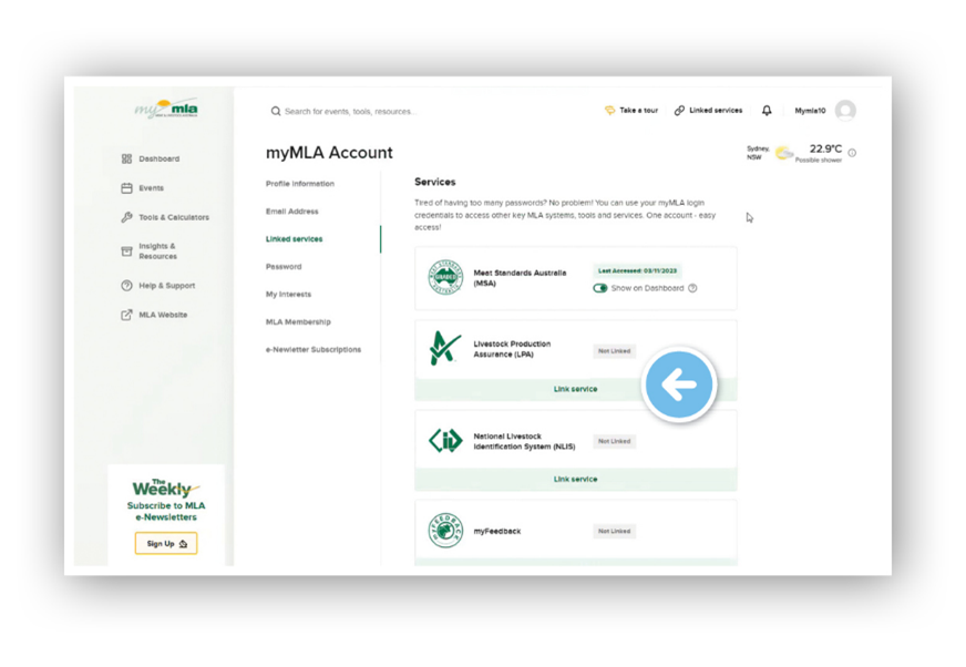 When you login to myMLA, click on ‘Linked services’ in the top menu, then ‘Link more services’.